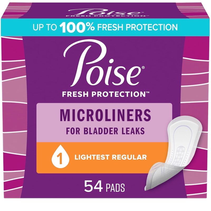 Poise Daily Microliners, Incontinence Panty Liners, 1 Drop Lightest Absorbency, Regular, 54 Count of Pantiliners, Packaging May Vary
